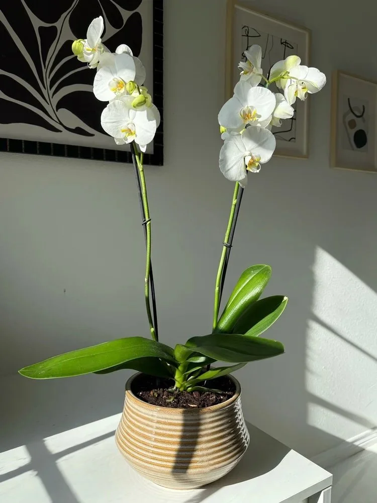 Double stem orchid planter in ceramic container